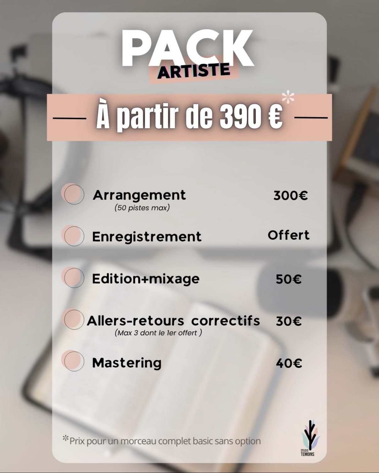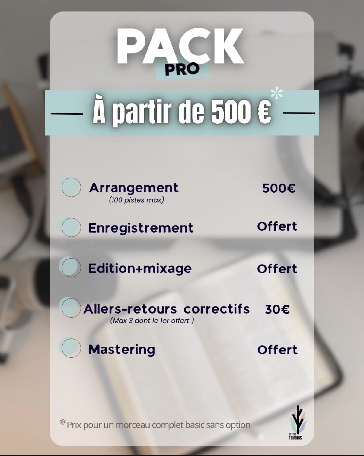 Nous te proposons différents packs Afin d’être le plus précis possible et pouvoir répondre au mieux à tes besoins.